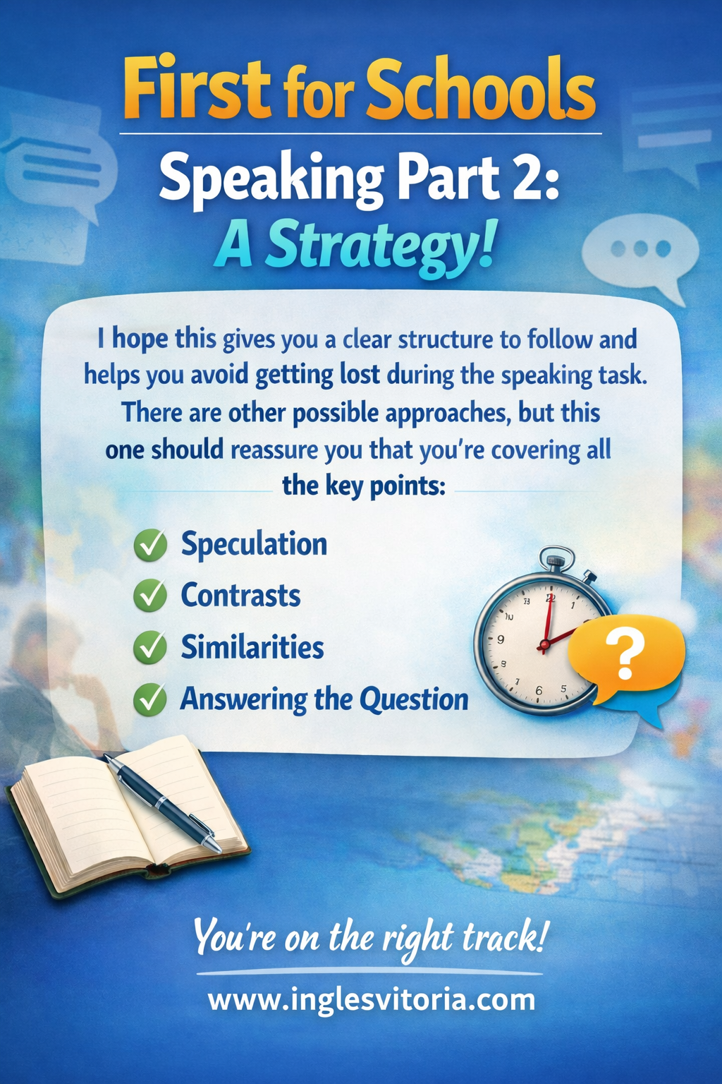 Here are some of the most common mistakes candidates make in B2 First Speaking Part 2, clearly explained, with tips on how to avoid them. Continue reading “First for schools Speaking Part 2: a strategy!”